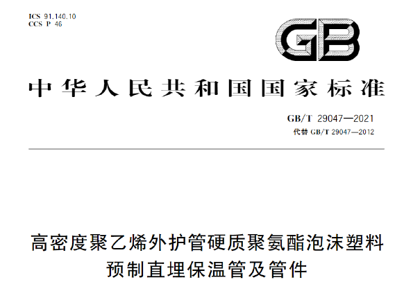 GB/T 29047-2021高密度聚乙烯外护管硬质聚氨酯泡沫塑料预制直埋保温管及管件